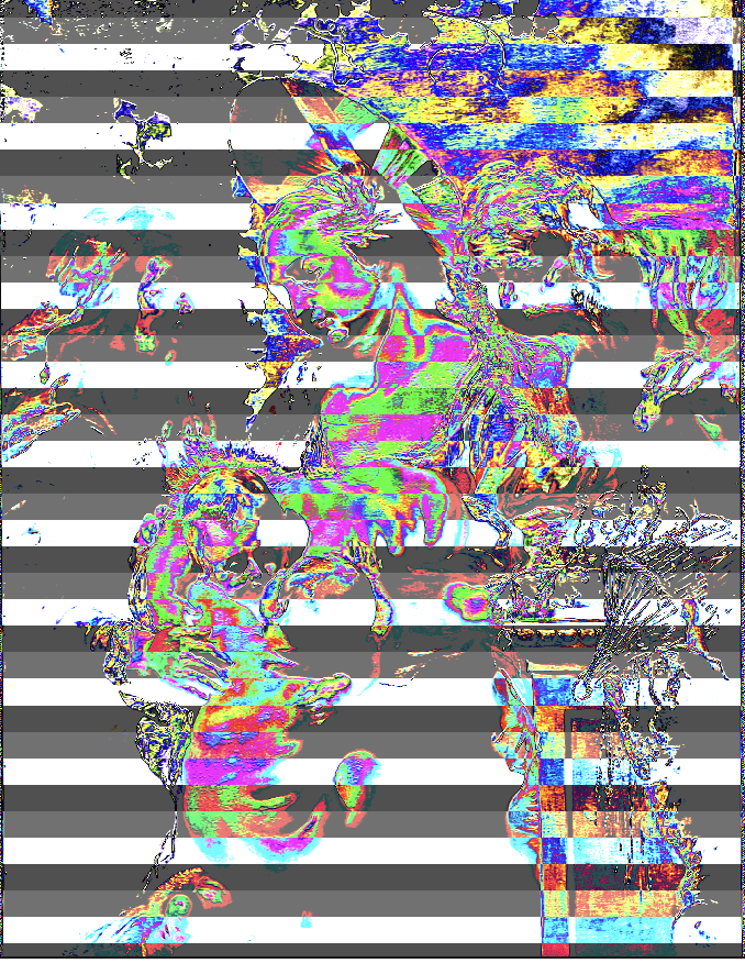 J'ai réalisé mon travail final en utilisant plusieurs IA. Mon objectif était d'explorer l'esthétique du glitch — cet aspect coloré et déconstruit provenant de bugs informatiques — à partir d'une œuvre donnée.